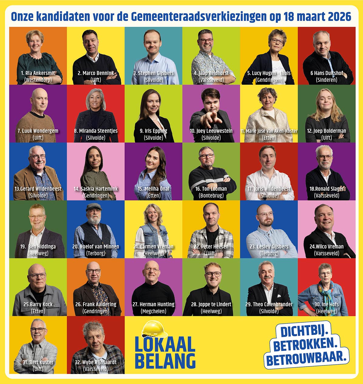 Onze 32 enthousiaste kandidaten voor de komende gemeenteraadsverkiezingen op een rijtje: